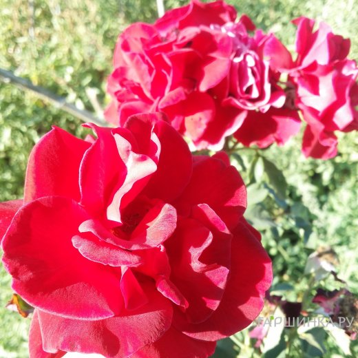 Роза Хеллоу почвопокровная - Формирует компактный куст до 60 см высотой, сплошь усыпанный цветками. Густомахровые цветки розы имеют пурпурно-красную, ближе к гранатовой, окраску и собраны в соцветия по 6-10 штук. Листва ярко-зеленая, блестящая. Сорт обладает исключительной устойчивостью к заболеваниям.