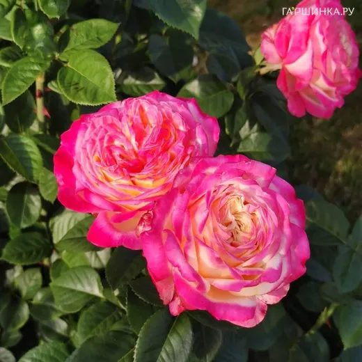 Роза Кордес Юбилей чайно-гибридная - цветки густомахровые, диаметром от 12 см, собраны в небольшие кисти из 1-3 шт. Насыщенно-желтые густомахровые цветки с яркой розовой каймой на каждом лепестке. Внешние лепестки содержат больше розового оттенка, чем центральные. Аромат очень насыщенный. Наибольшую силу имеет в первой половине дня. Основные ноты аромата – абрикос, ваниль, гелиотроп и жасмин. Цветки долго держатся на кусте, порядка 10 дней или даже больше. Также важно отметить, что это происходит даже в жаркую погоду.