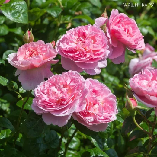 Роза Строберри Хил, Д.Остин кустарниковая (лиц) - Цветки густомахровые, розеточной формы, среднего размера, замечательного качества. Их цвет от чисто-розового постепенно переходит к краям к светло-розовому. В полном роспуске показывается несколько жёлтых тычинок в серединке. Эта роза удивительно красива в каждой фазе цветения! Она имеет особенно приятный аромат мирры с налётом лимона. Кусты высокие, сильные и довольно свободные. Листва блестящая, тёмно-зелёная. Прекрасно подходит для посадки на заднем плане. Зимостойкий сорт. Повторное цветение очень хорошее.