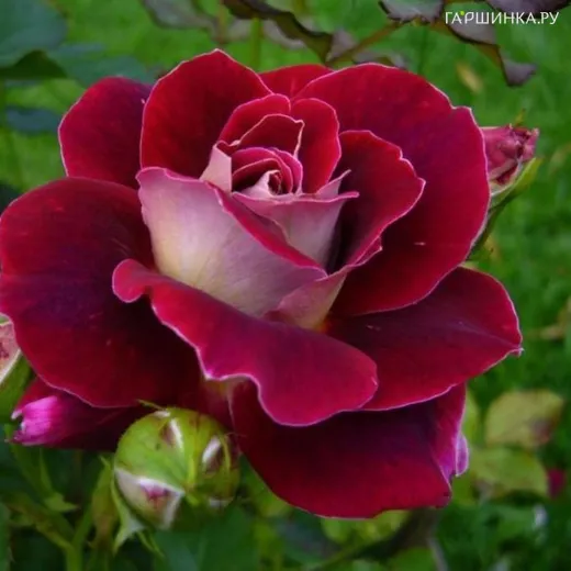 Роза Аллилуйя чайно-гибридная, Топалович (лиц) - Длинные бутоны с серебристой «изнанкой» лепестков медленно раскрываются в махровые цветки. Верхняя сторона лепестков – бархатистая, изысканного густо-красного цвета. Цветки практически не пахнут. Куст пышный, с блестящей темно-зеленой листвой.