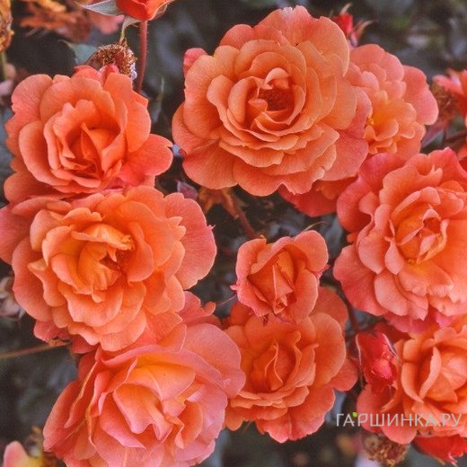 Роза Вестерланд кустарниковая, Тантау (лиц) Признанная немецкая роза (сертификат ADR 1974 г) известна далеко за пределами Германии и входит в каталоги крупных розоводческих фирм. Может выращиваться как куст и как плетистая роза. Побеги высокие, прямостоячие, высотой 160-200 см (а иногда и значительно выше), довольно колючие. Цветки очень яркие (смесь оранжевого, розового, абрикосового и золотого – цвет меняется в зависимости от погоды), диаметром 10-12 см, махровые (20-30 лепестков), душистые, в соцветии до 9 штук. Благодаря волнистой форме лепестков, которые эффектно сложены, форма цветка очень напоминает внешним видом так называемые «кружевные розы». Цветение обильное, повторное. Листья темно-зеленые, глянцевые, крупные, устойчивые к заболеваниям.
