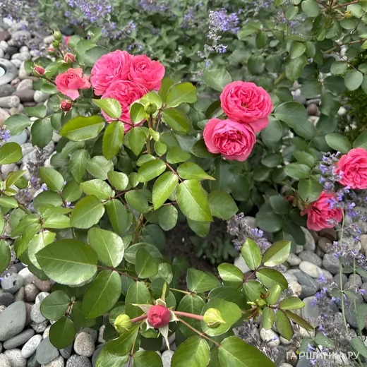 Роза, зарекомендовавшая себя красотой и элегантностью. Хорошо формируется куст, прекрасно самоочищается. Цветение продолжительное, волнами, все лето. Цветки среднего размера, насыщенно розово-алого цвета, помпонной формы в начале цветения и старинной формы в разгаре цветения. Я бы обязательно включила эту красавицу в свою коллекцию.