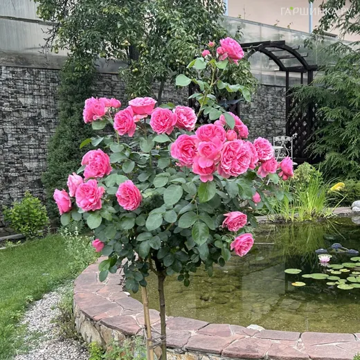 Роза Леонардо Да Винчи на штамбе 110см - чайно-гибридная группа . Высота штамба 110 см. Цветки насыщенно-розовые, 10 см, форма соцветия классическая, бокаловидная, цветение одиночное и кистями, повторноцветущая, присутствует легкий аромат. Листва крупная, зеленая, полуглянцевая. Зона зимостойкости 6. Не боится дождя и не выгорает.