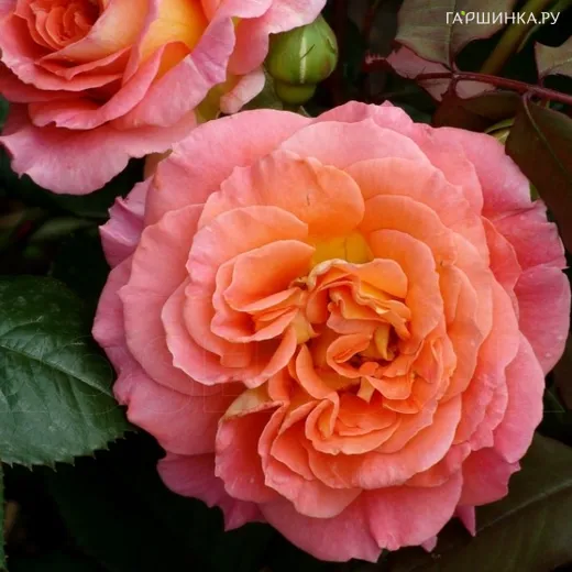 Роза Мами Дитьер - куст крепкий, раскидистый, высотой 100 см, шириной 60 см. Цветки диаметром 10-12 см, махровые (60-70 лепестков), яркие, оранжево-розовые до лососёво-розовых, в красивых соцветиях по 3-5. Аромат сильный, фруктовый. Цветение непрерывное, до заморозков. Листва высокоустойчивая к заболеваниям. Зона 6.