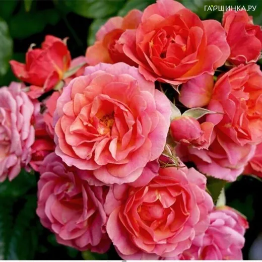Роза Мандарин спрей - Компактная роза с полумахровыми цветками в богатых гроздьях и высокой устойчивостью к болезням. Куст 50 см высотой и 40 см шириной. Листва темная, мелкая, блестящая.