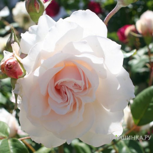 Роза Маргарет Меррил, Харкнесс (лиц) - группа флорибунда. Растение высотой 1,5 м. Цветки белые, с жемчужно - розовой серединой, 10 см, закручены по спирали, распускаются в три приема разной формы, форма классическая, цветение одиночное и кистями. Листва крупная, зеленая, полуглянцевая. Зона зимостойкости 6.