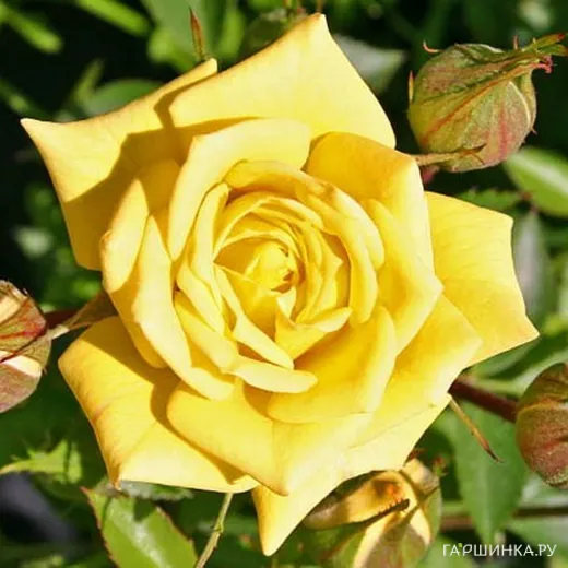 Роза Зонненкинд миниатюрная, Imperial Rose напоминает уменьшенную копию чайно-гибридной розы. Некоторые эксперты относят ее к невысоким чайно-гибридным розам, другие к крупным миниатюркам, но на самом деле она видимо лучше подойдет под категорию патио роз. Цветки элегантной формы, часто появляются по одному. Они чистого, яркого желтого цвета, и красиво выделяются на фоне темной листвы. Цветки сами опадают после отцветания. Куст ветвистый, очень обильно цветет, так что под цветами не видно листьев. Благодаря аккуратной форме идеально подходит для контейнеров.