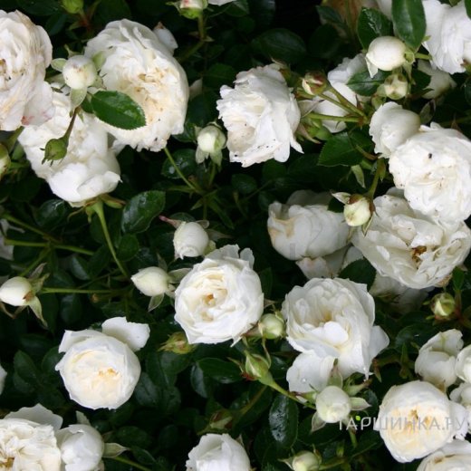 Роза Вайт Бэбифлор миниатюрная, Тантау (лиц) Густая компактная миниатюрная роза. Особенно хорошо подходит для горшечной и контейнерной культуры. Цветки чисто-белые, диаметром 5-6 см, средне-махровые, в полном роспуске показывают серединку.