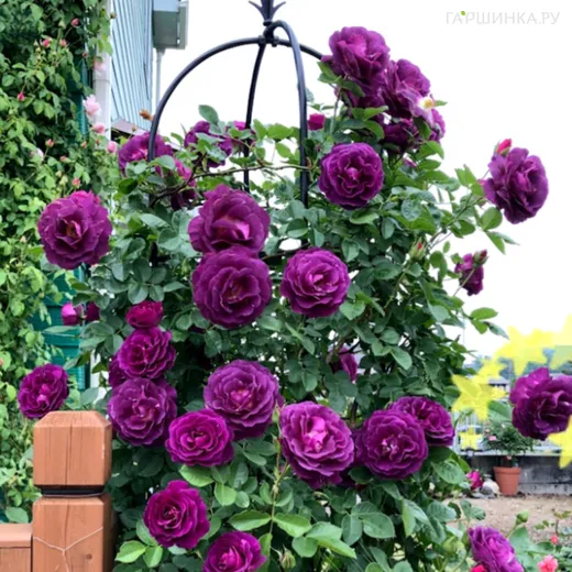 Роза Мистерьез флорибунда - Цветки чашевидные, полумахровые, яркие, фиолетовые или красновато-лиловые с более светлыми полосками, в маленьких соцветиях. Аромат сильный. Цветение повторное, в течение сезона. Кусты энергичные, сильные, высотой 100-120 см. Листва устойчивая к заболеваниям. Зона зимостойкости 6.