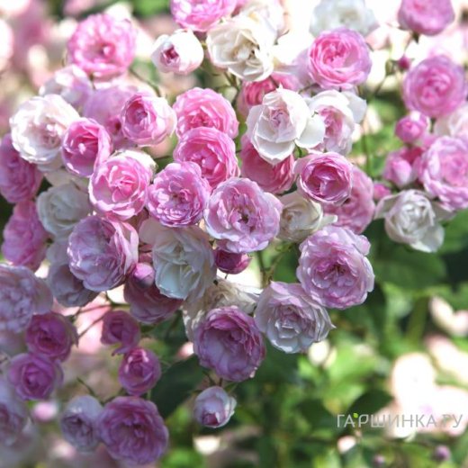 Роза Моцартс Леди, Скарман (лиц) - эффектная роза с многочисленными нежно-розовыми цветками холодного тона. Постепенно они выгорают до белых, что создает непревзойденную игру оттенков на кусте. Цветки шаровидные, полумахровые, собраны в многочисленные соцветия. Побеги гибкие, что позволяет использовать ее в качестве компактного рамблера. Высота куста 1-1,5 м. Зона зимостойкости 6 (до -23).