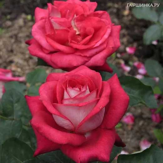 Роза Моника Беллуччи чайно-гибридная, Топалович (лиц) - Компактный куст высотой около 80 см, с крупными двухцветными бутонами - розово-малиновые сверху и кремовые на обратной стороне лепестков, Отличатся ярким ароматом с анисово-перечными нотками. Цветок состоит примерно из 50 лепестков и имеет диаметр около 12 см. Слабая устойчивость к дождю. Относится к 6 зоне зимостойкости.
