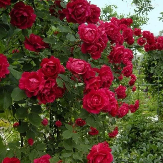 Роза Нахеглут плетистая, Топалович (лиц) - клаймбер. Бутоны остроконечные. Цветки махровые (50-60 лепестков), бархатистые тёмно-красные, одиночные или в небольших соцветиях. Аромат лёгкий. Цветение повторное, до заморозков. Листва полуглянцевая, высокоустойчивая к заболеваниям.