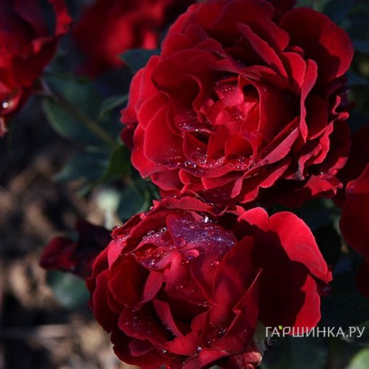 Роза Омаж а Барбара, Дельбар (лиц) - чайно-гибридная. Высота растения 0.8 м. Цветки красные, с бархатным налетом, 11 см , волнистый край, аромат мягкий, соцветия одиночные. Листва крупная, яркая, зеленая. Цветет долговременно, повторно. Зона зимостойкости 6.