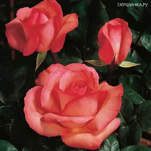 Крупные, насыщенно-розовые цветки классической формы.