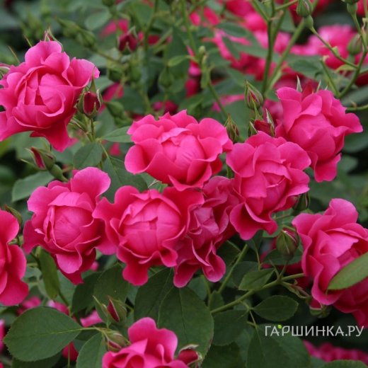 Роза Пинк Форест Роуз флорибунда, Топалович (лиц) - Роза с насыщенно ярко-розовыми цветами, сохраняющими цвет лепестков даже при высокой солнечной активности и с необычайной устойчивостью к болезням. Цветки полумахровые размером до 6 см, не выцветающие от времени и солнца. Цветение в кистях, повторное, обильное. Куст густой, разветвлённый, высотой 70 см, шириной 60 см. с тёмно-зелёной, полуглянцевой листвой, очень устойчивой к заболеваниями.