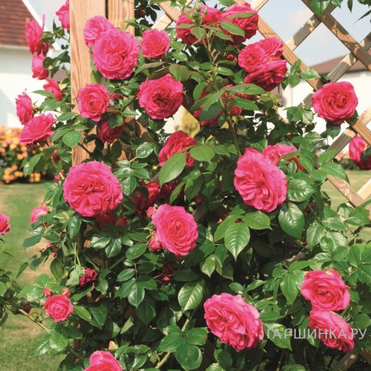 Роза Мистик плетистая Imperial Rose - компактный сорт, цветущий обильно и длительно, до самых заморозков. Цветки очень яркие, розовые. Вначале шаровидные, позднее распускаются до плоских розеток, серединку не показывают. Окраска очень устойчивая, не выгорает даже на полном солнце. Диаметр цветка 6-9 см. Побеги сильные, прямостоячие, с ярко-зеленой, блестящей листвой.