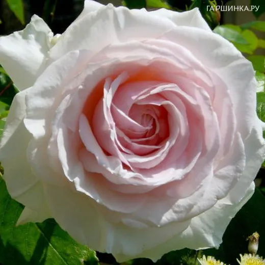 Роза Шванензее плетистая, Топалович (лиц) - Небольшие кисти элегантных цветков средних размеров (8-9 см), густомахровых, белых с розовым дыханием в центре. Цветки легко пахнут. Сорт популярен в северной Европе благодаря устойчивости цветков к дождю. Куст сильнорослый, с темно-зеленой листвой. Аромат: слабый.