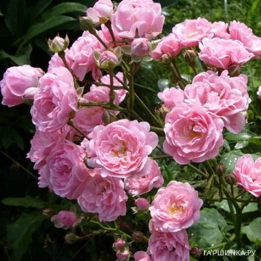 Роза Фейри почвопокровная, Imperial Rose - Куст раскидистый, высота 60 см, ширина 120 см. Цветок махровый, розовый, в диаметре 4 см. Повторное цветение слабое, но очень привлекательное, устойчив к заболеваниям. Лист темно-зеленый, глянцевый. Зона зимостойкости 6.