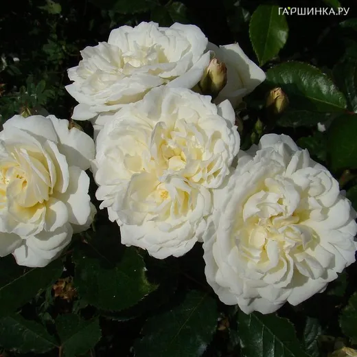 Роза Просперити ругоза (лиц) - Цветки маленькие и средние, диаметром 4-6 см, полумахровые (9-16 лепестков), розетковидные, белые с розовыми оттенками, ароматные, в больших красивых соцветиях. Цветение очень обильное, повторное, с июня до заморозков. Листва глянцевая, тёмно-зелёная. Куст густой, высотой 100-125 см, шириной 100 см. Может расти в полутенистом месте. Подходит для срезки.