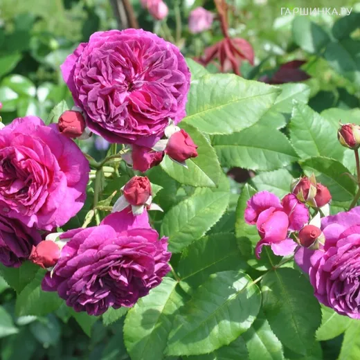 Цветки пурпурно-фиолетовые, густо-махровые. Диаметр до 10 см.
