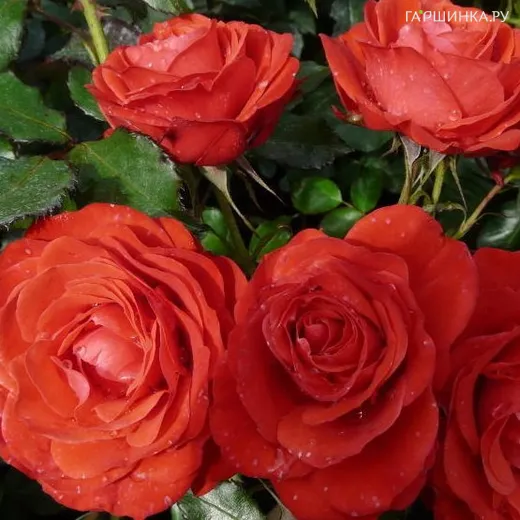 Роза Роберт Уинстон флорибунда, Харкнесс (лиц) - группа флорибунда. Высота 0,9 м, куст легко формируется. Цветки красные, с коралловым оттенком, 7 см, форма классическая, махровая, цветение одиночное и кистями, повторноцветущая, присутствует приятный аромат. Листва крупная, зеленая, полуглянцевая. Обильноцветущий сорт. Зона зимостойкости 6.