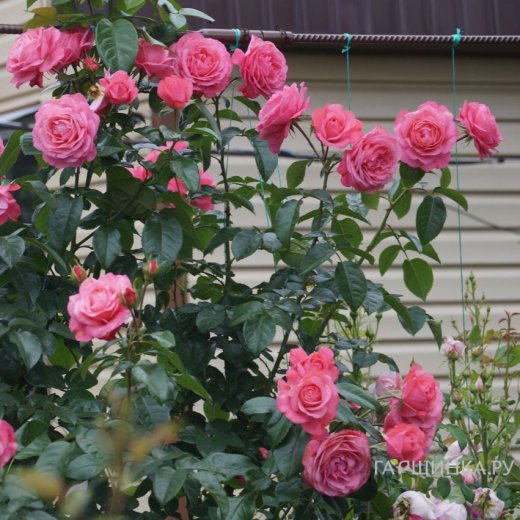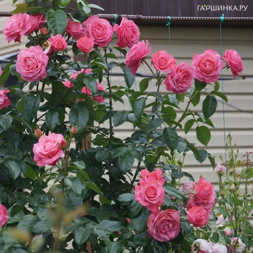 Роза Розанна плетистая, Кордес (лиц) - группа плетистых роз. Размер плети до 3,0 м, направляются легко. Цветки яркие, розовые, с коралловым оттенком 12 см, форма классическая, махровая, цветение одиночное и кистями, повторноцветущая, присутствует насыщенный приятный аромат. Листва крупная, зеленая, полуглянцевая. Обильноцветущий сорт. Зона зимостойкости 6.