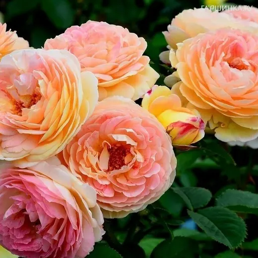 Роза Розоман Жанон кустарниковая, Imperial Rose - относится к группе современных шрабов. Форма цветков – глубокая чаша. Цветок густой, с округлыми лепестками, число которых может достигать 60. Цветы крупные, до 12 см в диаметре, размер нестабилен, может зависеть от условий выращивания и возраста растения. Очень нежный желтый оттенок с шафрановыми тенями постепенно сменяется розовым. Распределение окраски оригинально: цветок будто макнули в розовую краску, и она мягко впиталась в центр и кончики лепестков. Розовый цвет проявляется постепенно, по мере роспуска цветов. Устойчивость цветков к дождю низкая. Аромат средней, мягкий, фруктовый.