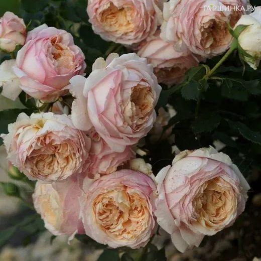 Роза Шарль де Нерво, Гийо (лиц) Цвет кремовый, с абрикосовыми тенями. Цветки махровые (26-40 лепестков), квартированные. Диметр 8-10 см. Сильный аромат лимона, апельсина, мирры. Цветет в течение всего сезона. Вертикальный куст высотой 80-100 см Листва матовая, темно-зеленая.