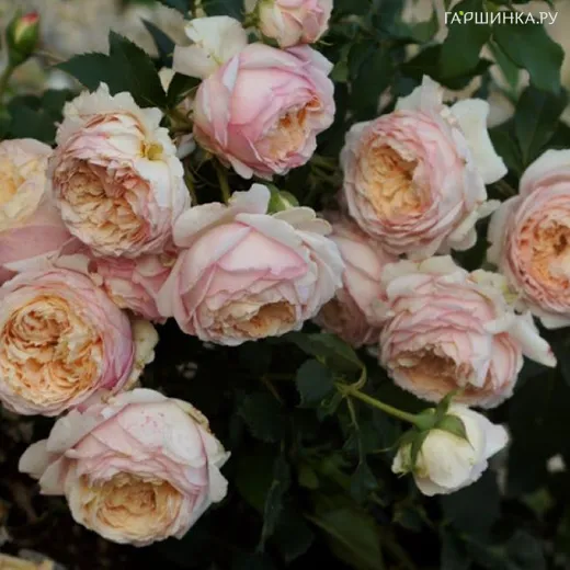 Роза Шарль де Нерво - цветки абрикосово-розовые с налётом цвета соломы, махровые (26-40 лепестков), квартированные. Аромат сильный, лимона, апельсина, мирры, эстрагона. Цветение повторное. Кусты высотой до 80 см, шириной 50 см. Листья матовые, тёмно-зелёные. Подходит для одиночных посадок и контейнеров.