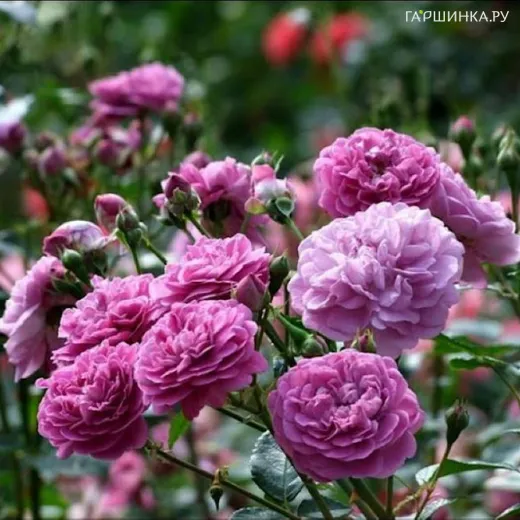 Роза Сиреневый дождь - редкий, невысокий, раскидистый, компактный с побегами длиной 60 см - 1,5 м. Для этой розы характерна темно-зеленая, полуглянцевая, плотная листва, устойчивая к заболеваниям. Сорт отличается обильным, повторным цветением и очень хорошей морозостойкостью. Цветок интенсивно-фиолетового цвета, чашевидный, густомахровый (80-85 лепестков в одном цветке), диаметр цветка 4-5 см, обладает легким ароматом.