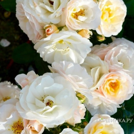Цветки нежно-абрикосовые. Темно-зеленая глянцевая листва.