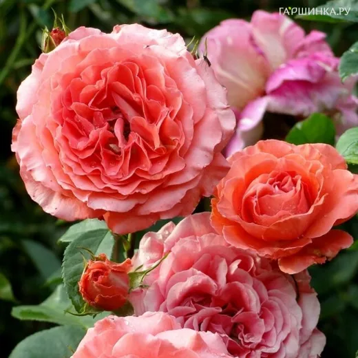 Роза Спешиал Мемориз - куст высотой 90 см, шириной 50 см. Закрученные цветки, диаметром 10-12 см, от светящихся коралловых до розовых с фестончатыми краями лепестков и серебристо-розовой изнанкой, цветущие в большом количестве до 25 штук на стебле. Листва блестящая, здоровая, оливковая с ярко-красным новым приростом. Цветение повторное, до поздней осени. Зона 6.