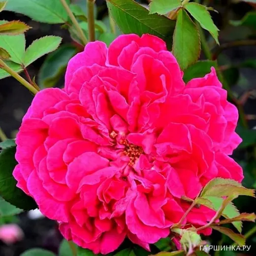 Роза Тем о Шентер - сорт образует длинные изящно выгнутые побеги, и цветки открываются по всей длине побегов, что более свойственно видовым розам. Куст стройный, высотой 180 см, шириной 150 см, с прекрасным повторным цветением. Цветки розеточной формы, в изящно свисающих соцветиях, полумахровые, вишнёво-красные, диаметром 7-8 см, с очень аккуратно расположенными лепестками. В полном роспуске они приобретают лёгкий розовато-лиловый оттенок и показывают золотисто-жёлтые тычинки. Аромат лёгкий фруктовый. После цветения образуются округлые плоды, которые следует удалять для улучшения повторного цветения. Это роза, которая будет выглядеть очень хорошо в составе смешанных посадок по периметру участков. Устойчивость к заболеваниям высокая. Относится к 5 зоне морозостойкости.