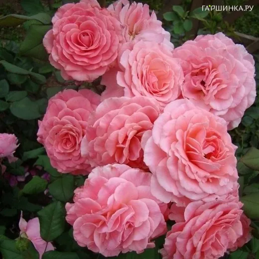 Роза Тиклд Пинк, Фрайер (лиц) - флорибунда. Растение высотой 0,9 м. Цветки лососево-розовые, светлеют к центру, 10 см, закручены по спирали, форма классическая, цветение кистями. Листва крупная, зеленая, полуглянцевая. Зона зимостойкости 6.