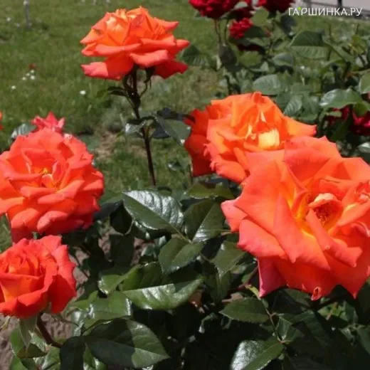 Роза Верано - цветы яркие, восхитительно смотрятся в групповых посадках. Относится к крупным сортам, в диаметре каждый цветок может достигать 9-11 см, бутон бокаловидный. Это среднемахровый вид, на одном цветке появляется до 40 лепестков, но на стебле формируется только один бутон. Аромат средней интенсивности. Куст в высоту редко достигает более 120 см. В ширину разрастается до 80 см. Листва зеленая, на стеблях есть много шипов.