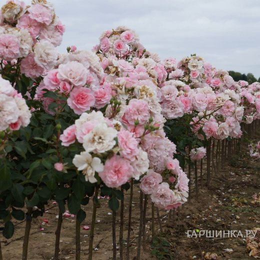 Купила штамбик в июне со скидкой, был с бутонами, я их удалила, подстригла шариком. За лето розочка нарастила массу, в августе зацвела и продолжала цвести сентябрь и октябрь.Цветочки мелкие 3-4 см,но в общей массе нежно-розовое облако парит над клумбой.Сказочная розочка. Побеги вызрели. Почвопокровные розы очень красиво смотрятся на штамбе, легко укрываются на зиму.