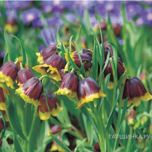 Рябчик Михайловского - миниатюрный, 15-25 см высотой. Цветки колокольчатые, поникающие, до 8 см. Рябчик Михайловского отличается удивительной окраской - бордово-фиолетовой с золотисто-желтыми краями лепестков. Количество цветков на цветоносе - 3-5 шт. Зацветет в мае. Он будет прекрасно смотреться в горшках, у бордюров на альпийских горках и в рокариях.