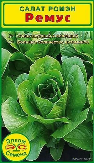 Отличный сорт типа Ромэн. Розетка крупная, приподнятая, листья волнистые темно-зеленого цвета, сочные и хрустящие. Сорт Ремус отличается превосходным слабоострым нежным вкусом. Листья содержат глюкозид лактуцин и большое количество витамина Е, что значительно повышает гемоглобин, успокаивает нервную систему, улучшает зрение. Салат полезен при анемии, ожирении, диабете, гипертонии. Сок из листьев эффективен при гастритах и язвенных болезнях. Благодаря очень позднему стрелкованию выращивать возможно в несколько сроков, с ранней весны до поздней осени. Для более раннего получения возможно выращивать через рассаду, посев в начале апреля, также возможен посев под зиму, в конце октября. При безрассадном способе посев семян в открытый грунт в начале мая.