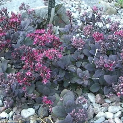 Очиток (седум) Бертрам Андерсон - это травянистое суккулентное низкорослое растение семейства Толстянковые. Высота 20-40см. Листик яркий пурпурный. Чем больше солнца, тем ярче будет цвет. В тени позеленеет. Цветок малиново-розовый. Цветет долго (до 1,5 месяцев) и обильно.