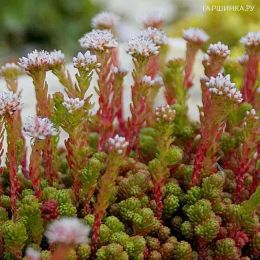 Очиток (седум) Лидийский - это травянистое суккулентное низкорослое растение семейства Толстянковые. Высота цветоносных побегов 5-10 см. Листья сизоватые, мелкие, циллиндрические, мясистые, прижатые к стеблю. Растёт плотным ковриком 3-5 см высотой. Коврик состоит из округлых розеток, состоящих из узких листочков. Ранней весной и осенью некоторые листочки становятся красного цвета. В июне распускаются многочисленные мелкие белые цветки. Начинает цвести в середине июня белым цветом, а к концу цветения цвет меняется на розовый.