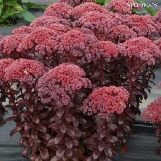 Очиток (седум) отогнутый Дарк Мэйджик - это травянистое суккулентное низкорослое растение семейства Толстянковые. Высота 35см. Темно-красный с фиолетовым напылением при закрытых бутонах, при открытии бутонов цвет меняется на яркий, кораллово-красный, листва и стебли ярко-бронзовые. Цветение: август-сентябрь.