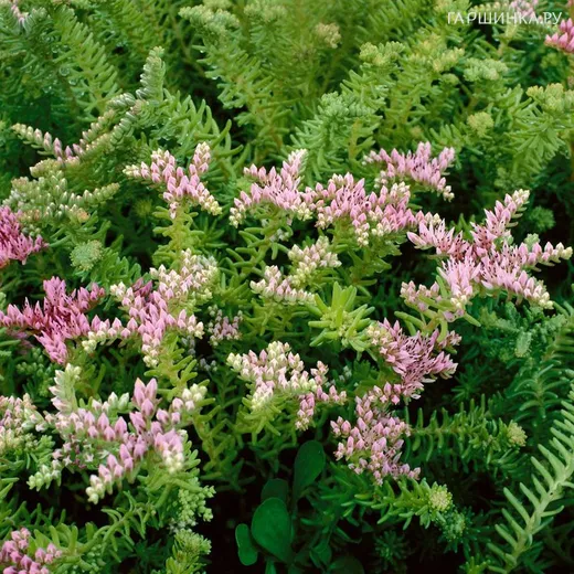 Очиток (седум) Си Стар - почвопокровное, вечнозеленое растение, образует густую, плотную подушку. Листья мягкие, линейные, тонкие, зеленовато-желтого цвета. Цветки нежно-розовые. Высота растения: 15 см. Ширина: 23 - 30cм.