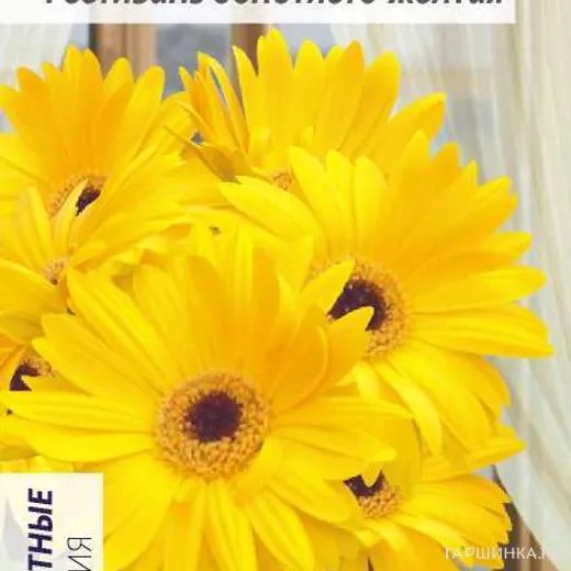 Гербера Фестиваль Золотисто-желтая 3шт. - Привлекательное красивоцветущее компактное растение. Свето- и теплолюбивое. Великолепные золотисто-желтые с темной серединкой цветы станут прекрасным украшением для комнат и оранжерей. Используются для аранжировки внутренних помещений, зимних садов и на срезку. Гербера очень светолюбива и теплолюбива, предпочитает слабокислые почвы, регулярный умеренный полив в период активного роста и цветения. Не выносит засухи, растению полезен влажный воздух, но переувлажнения грунта допускать нельзя. Семена на рассаду высевают в марте в легкую земляную смесь на глубину 0,5 см, дренаж из керамзита обязателен. Посевы содержат при температуре +20-25°С. Всходы появляются на 14-20 день. В фазе 2-3-х настоящих листьев проводят пикировку. Сеянцы не выносят переувлажнения, необходимо регулярное их проветривание. Подросшую рассаду с 4-5 настоящими листиками рассаживают в отдельные горшки по 3 шт. При пересадке корневую шейку растения нельзя заглублять во избежание загнивания. Зацветает растение через 7-10 месяцев после посева, продолжительность цветения – 3-4 месяца.