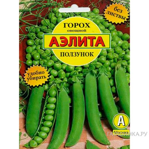 Горох Ползунок 25г ц/п б/ф, Семена Аэлита - Дружно созревающий среднеспелый сорт безлисточкового (усатого) типа. От всходов до технической спелости 55-60 дней. Растения высотой 60-70 см, с большой устойчивостью к полеганию, не требуют опор при выращивании. Бобы содержат 8-9 крупных зерен высокого качества. Горошек мозговой, отличного вкуса, очень сладкий, сочный и нежный. Использование универсальное. Урожайность зеленого горошка около 0,5 кг/м 2.