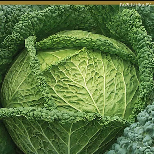Кочаны отличного качества. Позднеспелый сорт. Период от всходов до уборки урожая 125-130 дней. Лист крупный, светло-зеленый, сильнопузырчатый, гофрированный. Кочан округлый, плотный, на разрез желтоватый. Масса 1-2,2 кг. Вкусовые качества хорошие. Устойчивы к растрескиванию. Рекомендуется для использования в свежем виде.