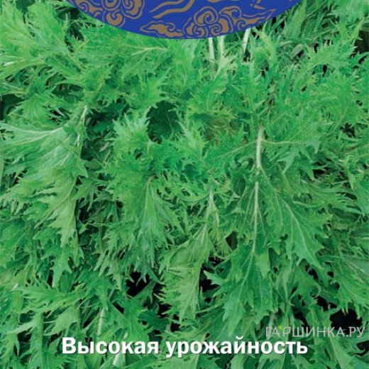 Среднеспелый сорт для выращивания в открытом грунте и пленочных теплицах. От всходов до начала хозяйственной годности 60-65 дней. Розетка листьев слабоприподнятая высотой 33-35 см и диаметром 50-55 см. Лист среднего размера, темно-зеленый, лировидно- перистый, рассеченный. Масса растения 0,5 -0,6 кг. Вкус приятный с яблочным оттенком. Листья используются в свежем виде, как салат, для варки, добавляют в супы, рагу, маринады. Сорт высокоурожайный, устойчивый к стрелкованию, хорошо отрастающий после срезки. Для получения ранних урожаев японскую капусту высевают на рассаду в марте, высаживая в грунт в мае.
