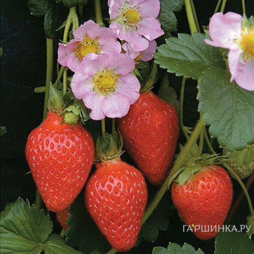 Семена Клубника Мерлан F1 ремонтантная - компактный раннеспелый сорт. Плодоносит все лето, может выращиваться на балконе или подоконнике. Цветки крупные, розовые, появляются на кусте практически непрерывно, что делает его невероятно декоративным. Ягоды конической формы, с неповторимым ароматом, сладкие и сочные, массой до 20 г.