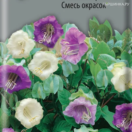 Необычное вьющееся растение. Цепляется за опору усиками, образует многочисленные побеги до 3м. Листья перистые. Цветы колокольчатые, фиолетовые и белые, диаметром 6-8 см. Цветёт с июля до заморозков. Агротехника. Растение свето- и теплолюбивое. На плодородных почвах растет быстро, покрывая большую поверхность. Хорошо реагирует на подкормки и полив. Используют для вертикального озеленения, на балконах. При выращивании рассады посевы проводят в конце февраля - начале марта в ящики. Глубина заделки семян 1,5 см. При температуре почвы +20°C всходы появляются на 14-20 день. Сеянцы в фазе первого настоящего листа пикируют по одному в горшочки. Для опоры ставят колышки. В открытый грунт растения высаживают в конце мая – начале июня, выдерживая расстояние между растениями 60-80 см.