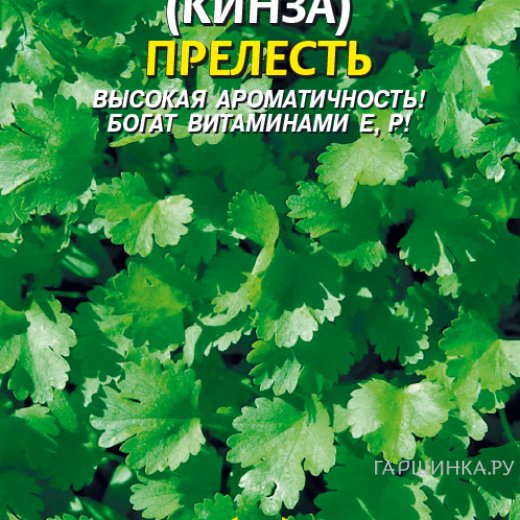Кинза (Кориандр) Прелесть 2 г, Плазменные семена - Пряное, эфиромасличное растение, относящееся к типу овощных кориандров. Рекомендуется для выращивания в открытом и защищенном грунте. Сорт позднеспелый, период от полных всходов до уборки зелени 30-50 дней. Высота розетки 15-18см, лист среднего размера зеленый, среднерассеченный. Ткань листа нежная, слабоморщинистая. Урожайность зелени 1,6кг/м2. Культура богата эфирными маслами, придающими приятный сильный аромат листьям и семенам. Листья и семена отличаются высоким содержанием эфирного масла, витаминов А, В1, В2, С, каротина. Свежие листья и молодые стебли используются в качестве салатной зелени, как приправа к первым и вторым блюдам, а сушеные листья и зрелые семена в виде пряности при приготовлении маринадов, кондитерских и мучных изделий, изготовлении колбас. Отличный медонос. Кориандр полезен также при простудах и желудочных заболеваниях, рекомендуется людям со слабым зрением.