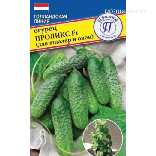 Огурец Проликс F1 (для шпалер и окон) 5 шт, Семена Престиж - cреднеранний, партенокарпический, крупнобугорчатый гибрид огурца для выращивания в открытом грунте. Гибрид отлично подходит для выращивания во втором обороте, очень неприхотлив, не требователен к поливу, имеет высокую регенеративную способность. Срок созревания 40-42 дня от появления всходов. Плоды красивого зелёного цвета, длиной 10-12 см. Имеют хорошее внутреннее качество, идеально подходят для переработки и свежего рынка.